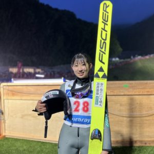 蔵王サマー大会へ出場当日雨が降りしきる会場では、1000名を超える観客に入場制限がかかるほどの盛り上がり。 結果は12位と悔しさが残りましたが、試合後、 「少しずつ調子も上がっており自分のジャンプを表現出来るようになってきた。次の遠征につなげたい。」と梨子ちゃんから前向きな言葉が聞けましたよ!戦いは常にこれから! 遠方からでも応援が出来るようLIVE配信等をご準備くださった主催者の皆さま方、有難うございました! 一覧に戻る